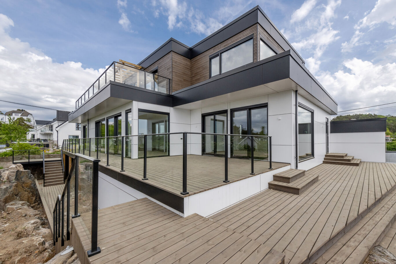 Det færdige resultat af parcelhuset i Tromøya står som et eksempel på, hvordan Rockpanel kan bidrage til en smuk, holdbar og funktionel facade – selv under krævende forhold tæt på havet. Kombinationen af sorte og hvide plader med naturligt træ skaber et moderne, tidløst udtryk, der både matcher omgivelserne og giver boligen sin egen, karakterfulde identitet.