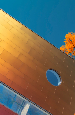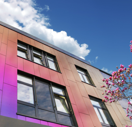 Giv din bygning liv med de fortryllende farveskift fra Rockpanel Chameleon facadebeklædning. Takket være en speciel belægning ændrer farven sig med lyset og synsvinklen – for en facade, der altid ser ud til at være i bevægelse. Rockpanel Chameleon fås i forskellige nuancer og gør enhver bygning til et ægte blikfang med varig effekt.